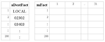 Para el punto 3 del enunciado tendremos que tener una matríz [1..200,1..31]. 200 destinos (a lo sumo) por 31 días del mes para acumular los importes discriminados. También necesitaremos un array paralelo de 200 strings para saber a que destino corresponde cada fila de la matríz.